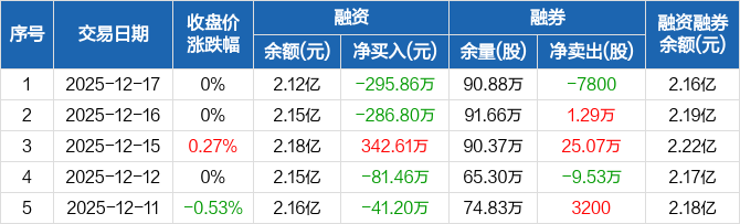 西安银行:融资净偿还295.86万元,融资余额2.12亿元(12-17)
