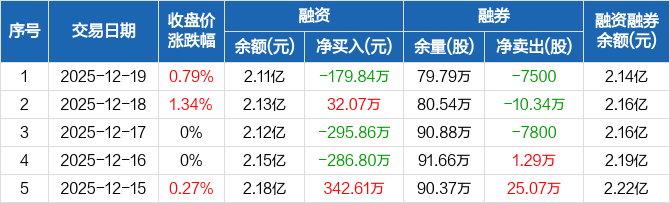 西安银行:融资净偿还179.84万元,融资余额2.11亿元(12-19)