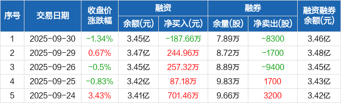 雪天盐业:融资净偿还187.66万元,融资余额3.45亿元(09-30)