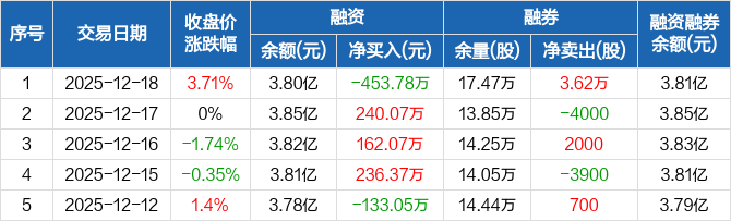 雪天盐业:融资净偿还453.78万元,融资余额3.8亿元(12-18)