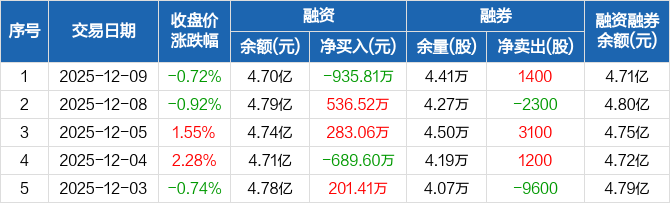 爱柯迪:融资净偿还935.81万元,融资余额4.7亿元(12-09)
