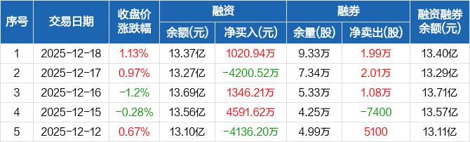 中国海油:融资净买入1020.94万元,融资余额13.37亿元(12-18)