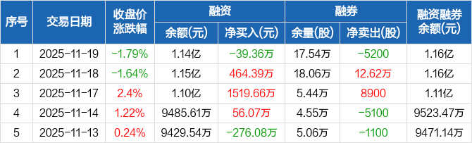 新天绿能:融资净偿还39.36万元,融资余额1.14亿元(11-19)