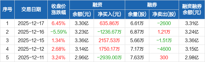 株冶集团:融资净买入635.86万元,融资余额3.3亿元(12-17)