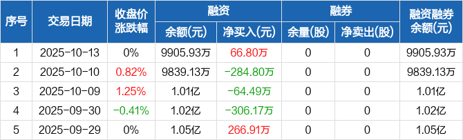 福成股份:融资净买入66.8万元,融资余额9905.93万元(10-13)