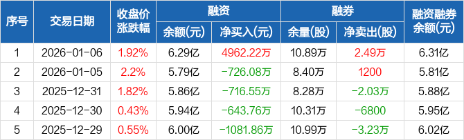 内蒙一机:融资净买入4962.22万元,融资余额6.29亿元(01-06)