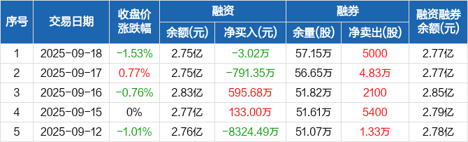 海油发展:融资净偿还3.02万元,融资余额2.75亿元(09-18)