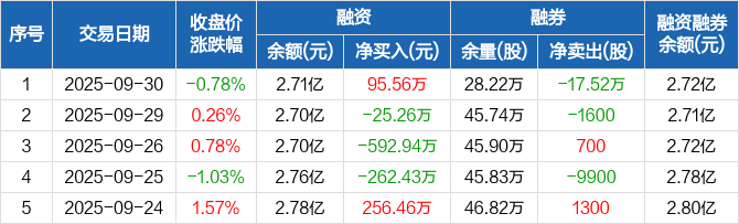 海油发展:融资净买入95.56万元,融资余额2.71亿元(09-30)