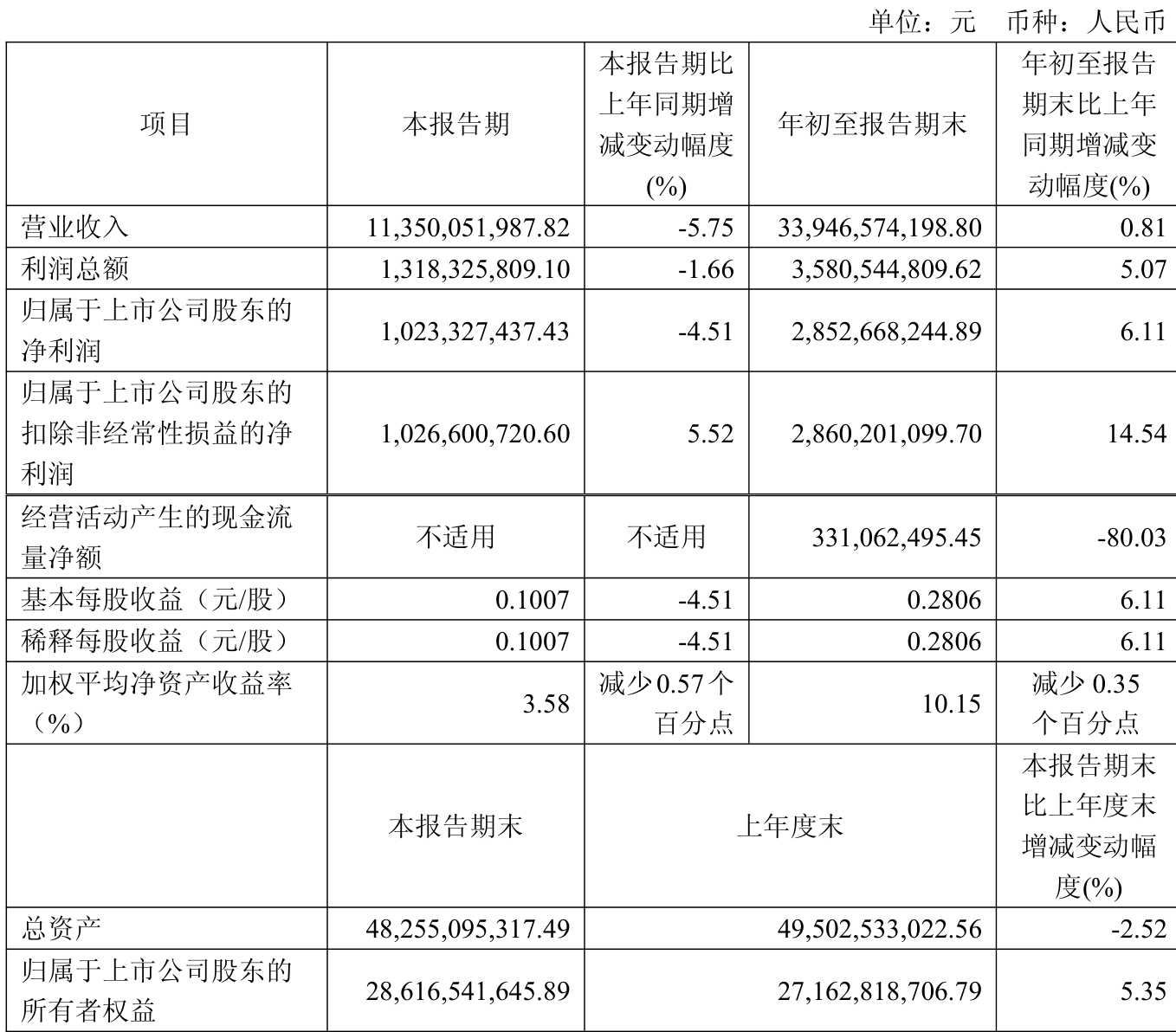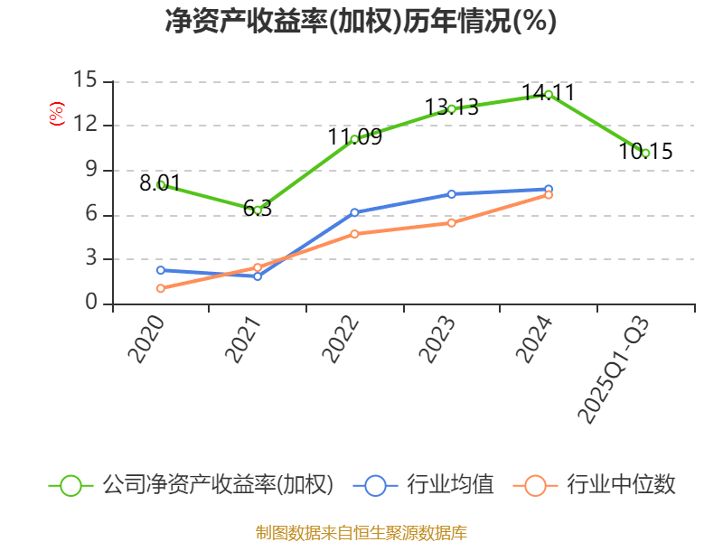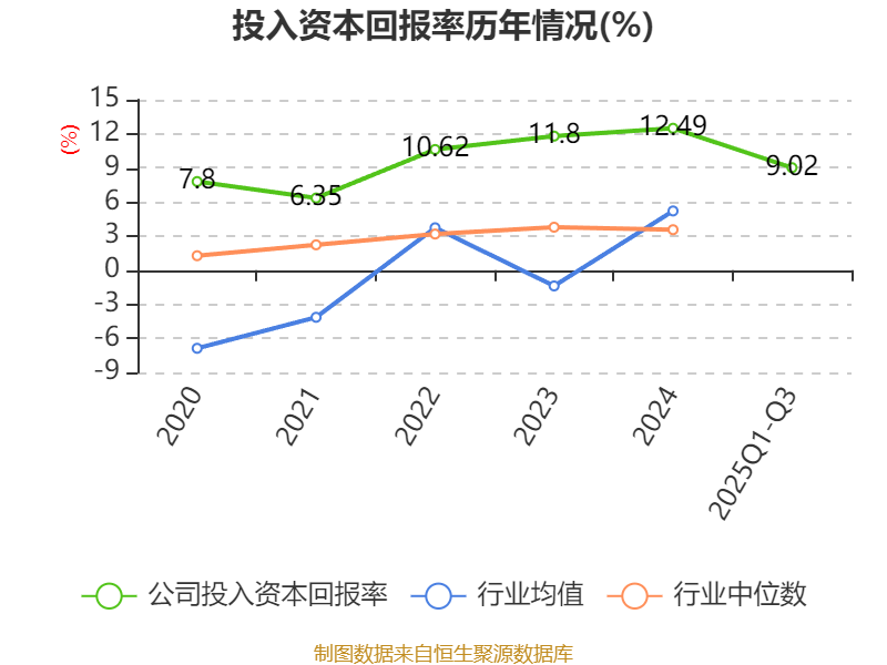 盈利能力方面, 2025年前三季度公司加权平均净资产收益率为10.15%,同比下降0.35个百分点。公司2025年前三季度投入资本回报率为9.02%,较上年同期下降0.35个百分点。