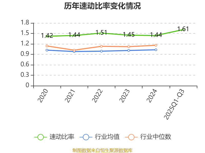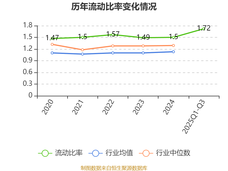 2025年前三季度,公司流动比率为1.72,速动比率为1.61。