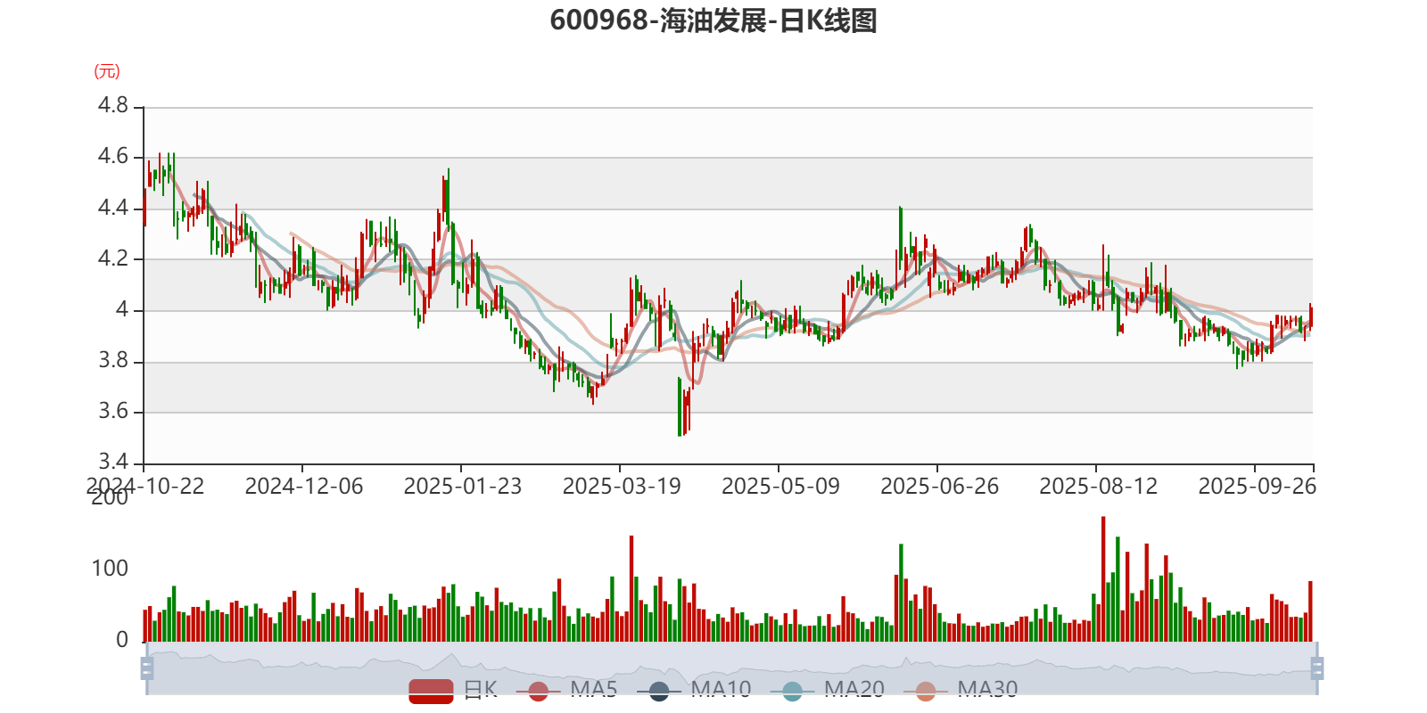 以10月21日收盘价计算,海油发展目前市盈率(TTM)约为10.67倍,市净率(LF)约1.42倍,市销率(TTM)约0.77倍。