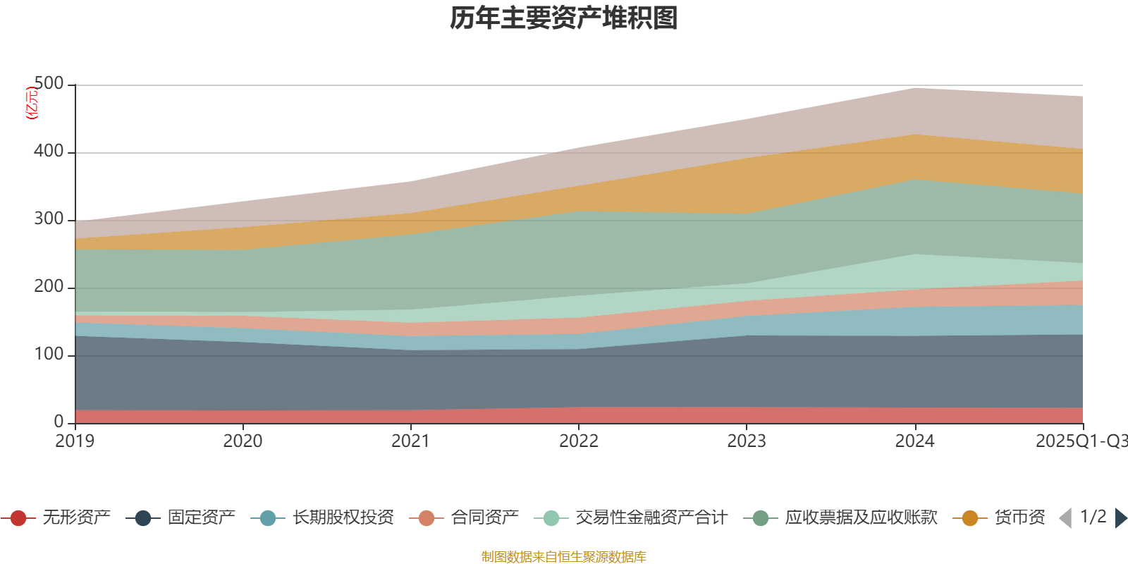资产重大变化方面,截至2025年三季度末,公司交易性金融资产合计较上年末减少50.6%,占公司总资产比重下降5.2个百分点;合同资产较上年末增加40.65%,占公司总资产比重上升2.3个百分点;存货较上年末增加57.74%,占公司总资产比重上升1.27个百分点;固定资产较上年末增加2.47%,占公司总资产比重上升1.09个百分点。