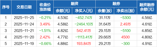 中材国际融资融券信息显示,2025年11月25日融资净偿还452.74万元;融资余额4.53亿元,较前一日下降0.99%。