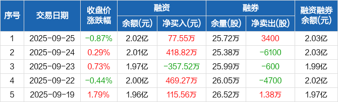 恒源煤电:融资净买入77.55万元,融资余额2.02亿元(09-25)