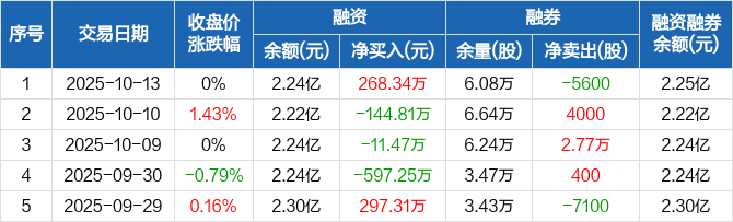 新五丰:融资净买入268.34万元,融资余额2.24亿元(10-13)