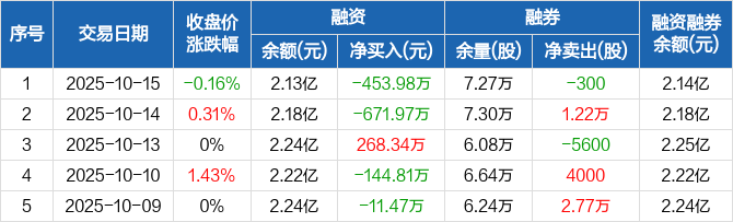 新五丰:融资余额2.13亿元,创近一年新低(10-15)