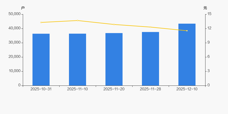自2025年10月31日以来,公司股东户数连续4期上涨,截至目前增幅为19.45%。2025年10月31日至2025年12月10日区间股价下降13.18%。