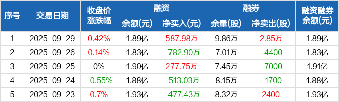 航民股份:融资净买入587.98万元,融资余额1.89亿元(09-29)