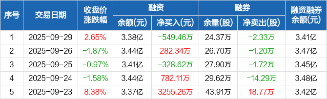 南网储能:融资净偿还549.46万元,融资余额3.38亿元(09-29)