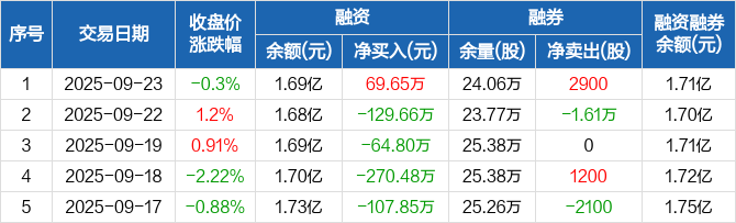 开滦股份:融资净买入69.65万元,融资余额1.69亿元(09-23)
