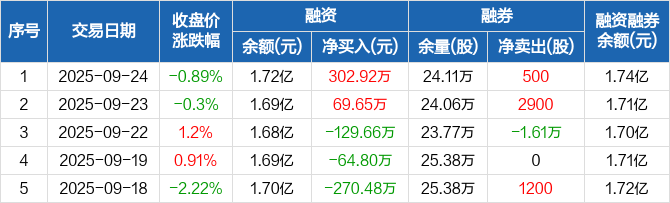 开滦股份:融资净买入302.92万元,融资余额1.72亿元(09-24)