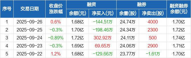 开滦股份:融资净偿还144.51万元,融资余额1.68亿元(09-26)