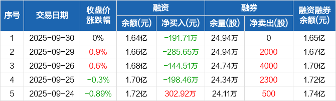开滦股份:融资余额1.64亿元,创近一年新低(09-30)