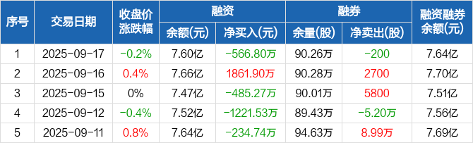 九州通:融资净偿还566.8万元,融资余额7.6亿元(09-17)