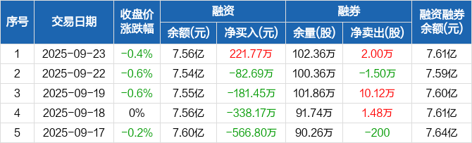 九州通:融资净买入221.77万元,融资余额7.56亿元(09-23)