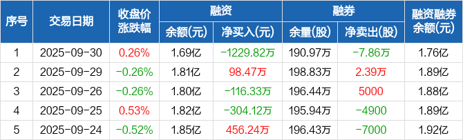 唐山港:融资净偿还1229.82万元,融资余额1.69亿元(09-30)