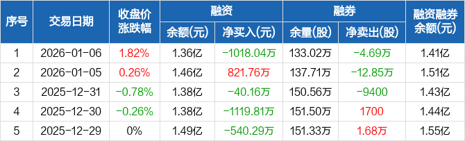 唐山港:融资净偿还1018.04万元,融资余额1.36亿元(01-06)