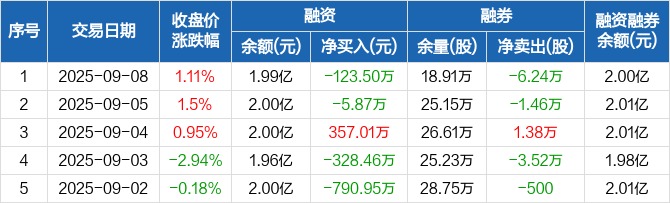 晋亿实业:融资净偿还123.5万元,融资余额1.99亿元(09-08)