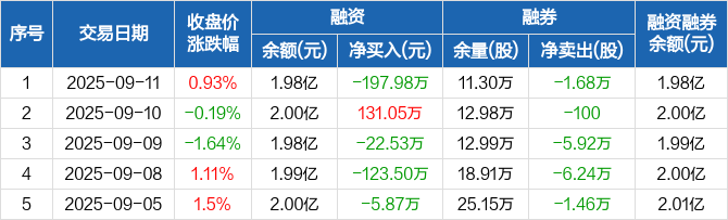 晋亿实业:融资净偿还197.98万元,融资余额1.98亿元(09-11)