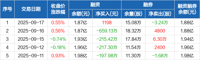 晋亿实业:融资净买入1198元,融资余额1.87亿元(09-17)
