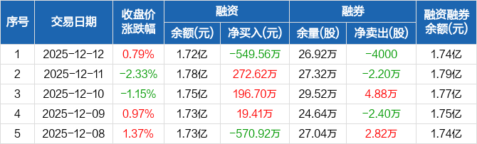 晋亿实业:融资净偿还549.56万元,融资余额1.72亿元(12-12)