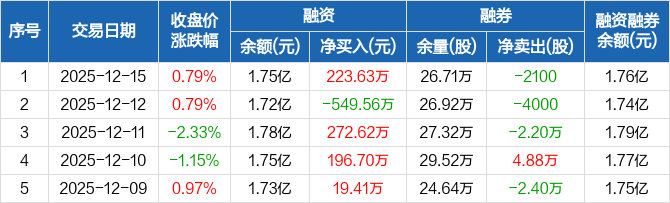晋亿实业:融资净买入223.63万元,融资余额1.75亿元(12-15)