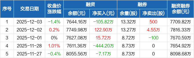 柳钢股份:融资净偿还105.82万元,融资余额7644.16万元(12-03)