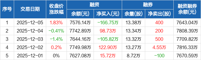 柳钢股份:融资净偿还166.75万元,融资余额7576.14万元(12-05)