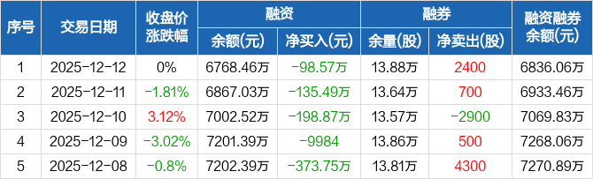 柳钢股份:融资余额6768.46万元,创近一年新低(12-12)