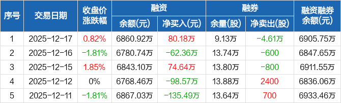 柳钢股份:融资净买入80.18万元,融资余额6860.92万元(12-17)