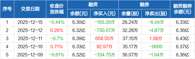 南京银行:融资净偿还150.29万元,融资余额6.3亿元(12-15)
