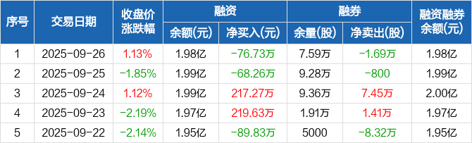 文峰股份:融资净偿还76.73万元,融资余额1.98亿元(09-26)