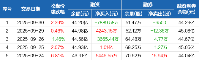 隆基绿能:融资净偿还7889.58万元,融资余额44.2亿元(09-30)