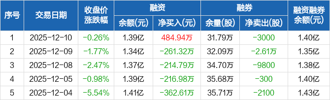 陕西黑猫:融资净买入484.94万元,融资余额1.39亿元(12-10)