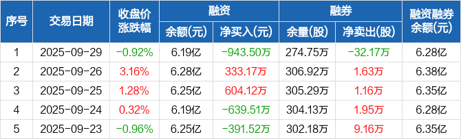 节能风电:融资净偿还943.5万元,融资余额6.19亿元(09-29)
