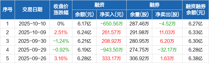 节能风电:融资净偿还650.56万元,融资余额6.17亿元(10-10)