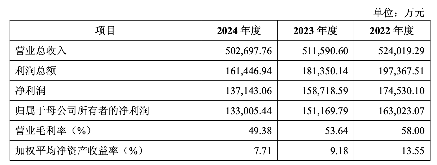 2022年~2024年,公司营业毛利率分别为58.00%、53.64%和49.38%,加权平均净资产收益率分别为13.55%、9.18%和7.71%。2023年,受上网电价下降等影响,公司盈利能力指标有所下降。