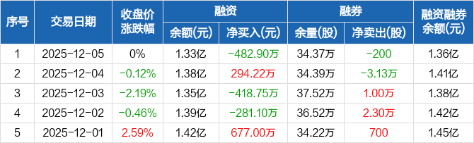 山东出版:融资净偿还482.9万元,融资余额1.33亿元(12-05)
