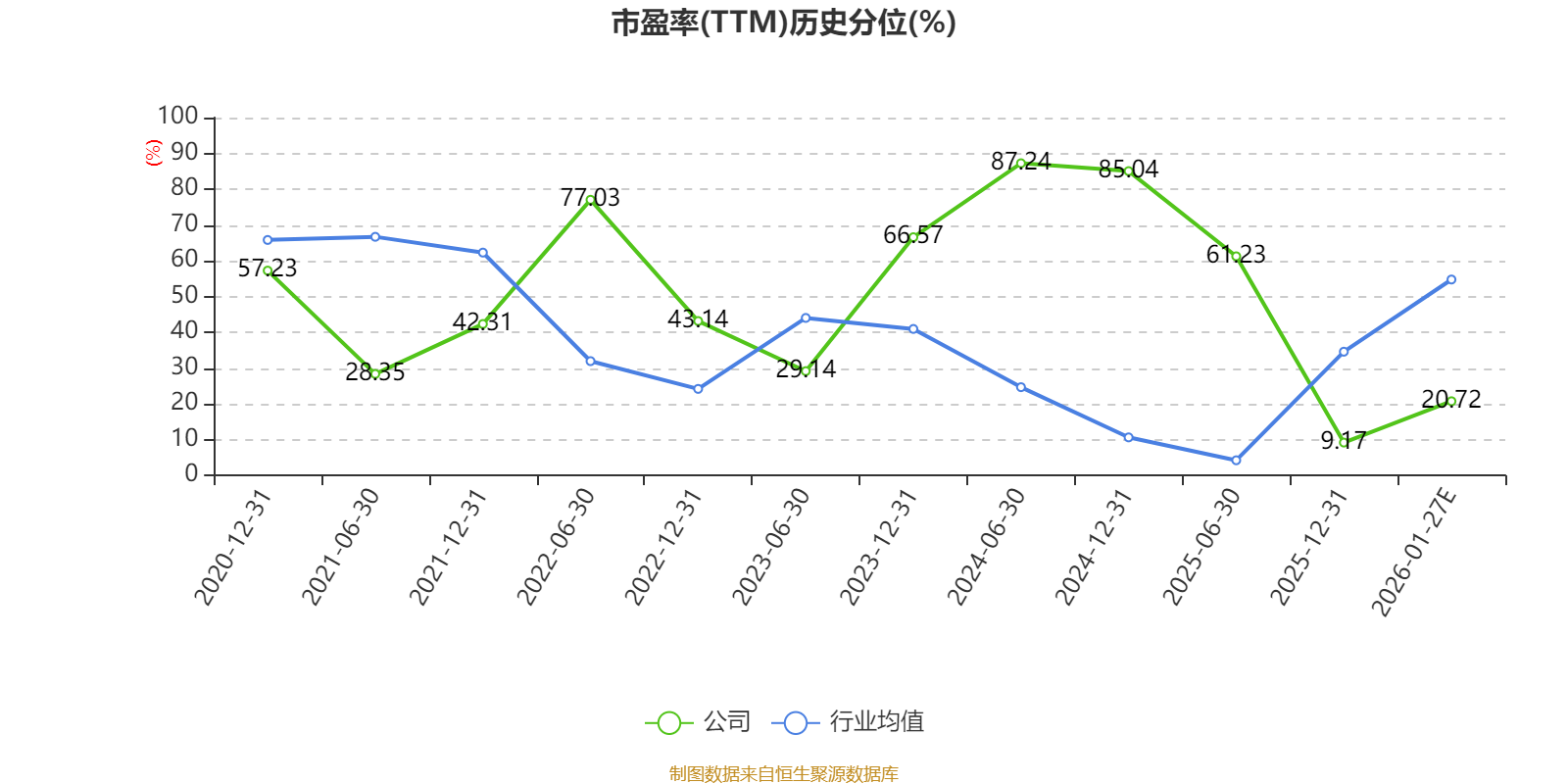 以本次披露业绩预告均值计算,公司近年市盈率(TTM)图如下所示: