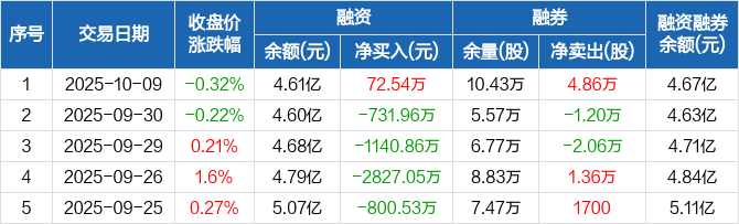 春秋航空:融资净买入72.54万元,融资余额4.61亿元(10-09)